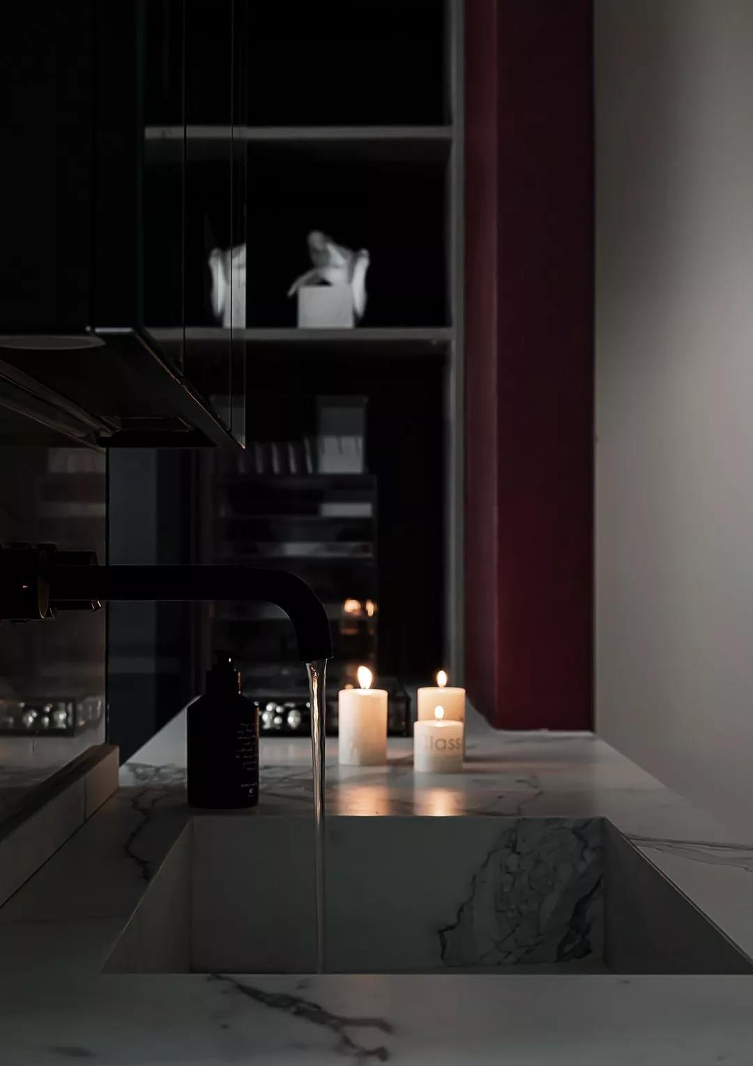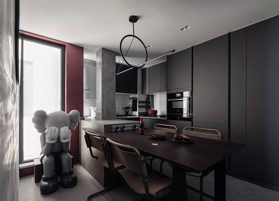 紅與黑是所有色彩搭配中最經(jīng)典的組合。紅的激情熱烈、黑的沉浸冷酷,在碰撞中闡述空間情節(jié),與周圍的白灰搭配,也有了個(gè)性與風(fēng)格。
